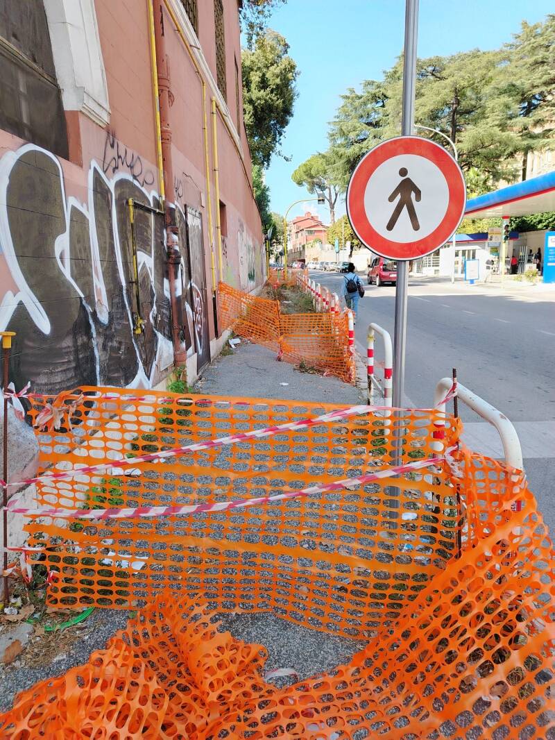 Via Tuscolana (tra Largo Paola Frassinetti e via Casal Monferrato) che è transennato da molto tempo ed i pedoni sono costretti a camminare sul marciapiede opposto o rischiare di farsi investire. Non c'è alcun cartello di lavori in corso.